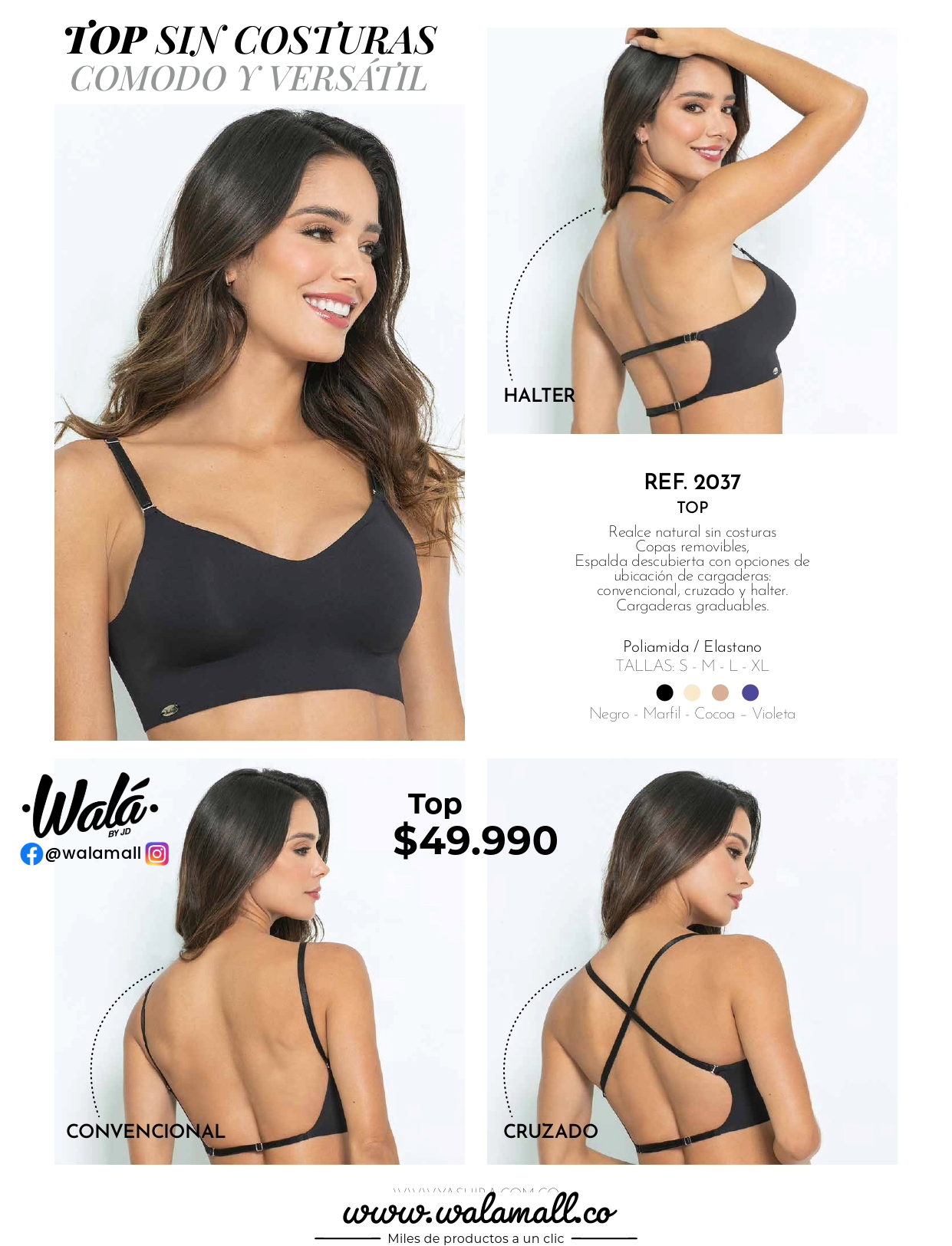 convencional, cruzado y halter.