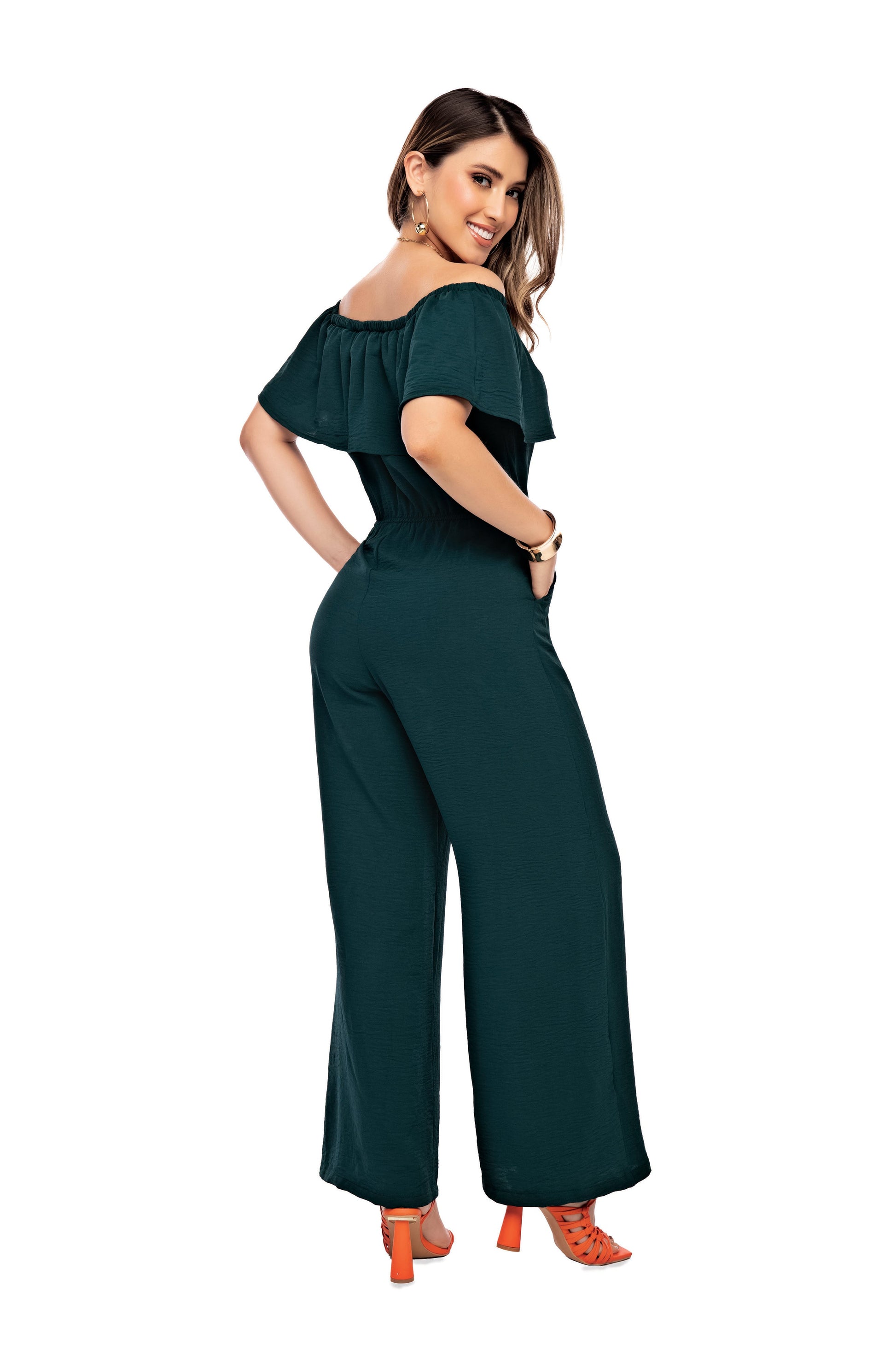 Enterizo En Poliester Corrugado Silueta Semiajustado, Resorte En La Cintura Para Formar La Silueta, Bolsillos